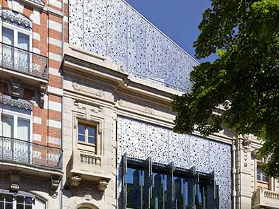 5、鋁單板幕墻空調(diào)外機(jī)罩可回收再利用,有利環(huán)保。鋁板可100%回收,回收價(jià)值更高。